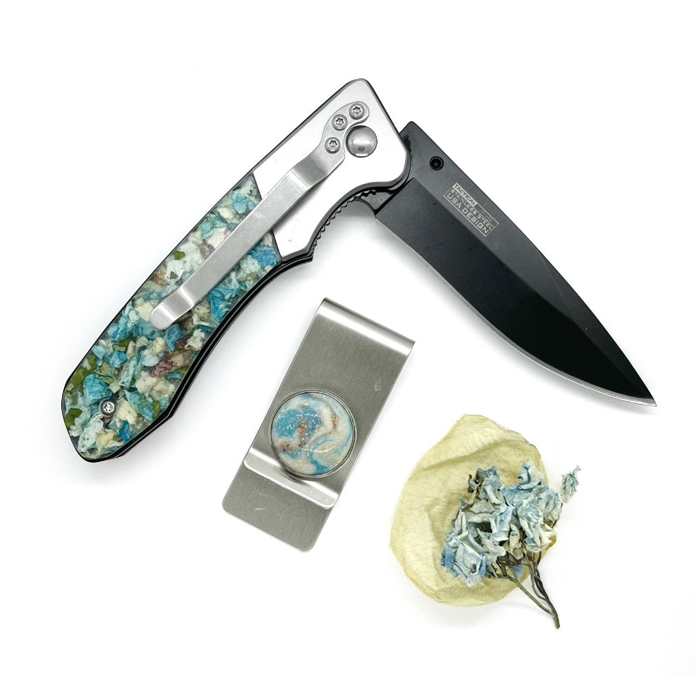 Keepsake Memorial Resin Flower Petal Folding Pocket Knife / 323