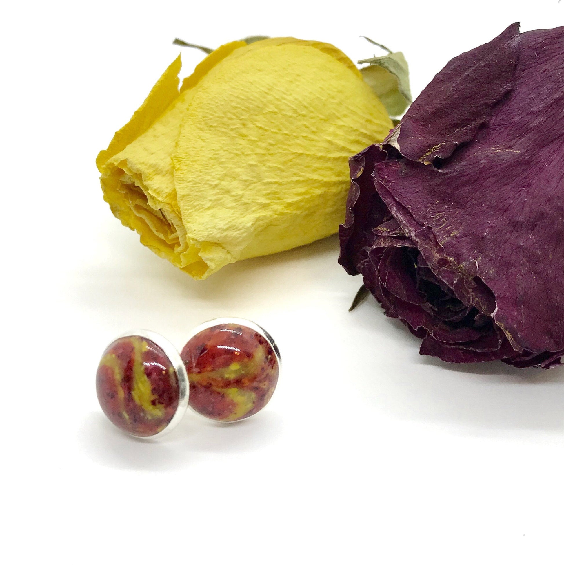 Beautiful keepsake cabochon style post earrings, made to order from your special occasion flowers. Preserve your special memories with these simple, yet elegant earrings.