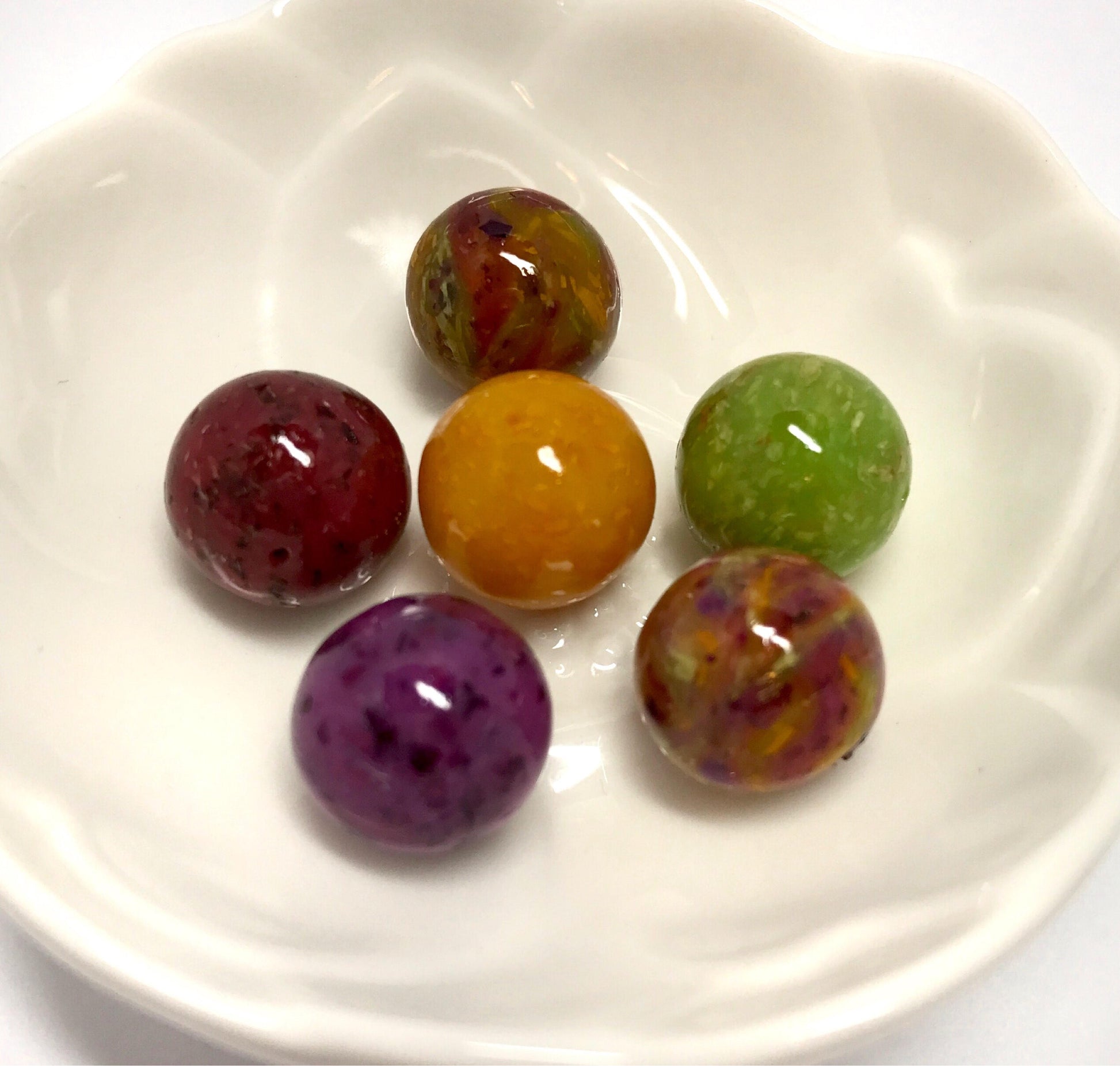 *All Petalworks flower petal keepsakes are handmade with your real flower petals. Each flower petal bead is unique and cannot be duplicated. All photos and pictures are shown as an example of the item you will receive, the color of your finished piece will be determined by your flowers. Choose a single color flower petal or we can custom blend up to 3 colors together for a marbled or "swirled" effect.