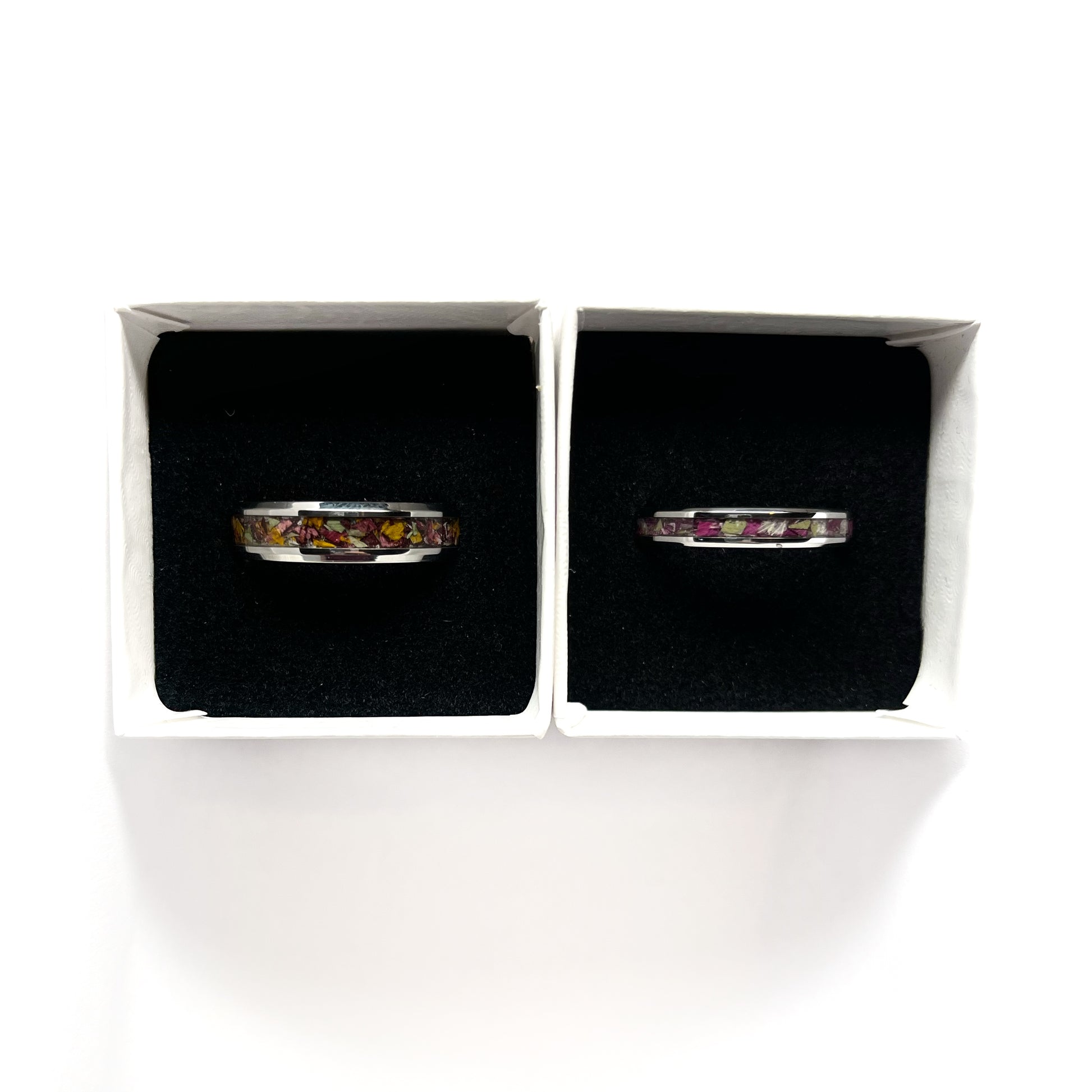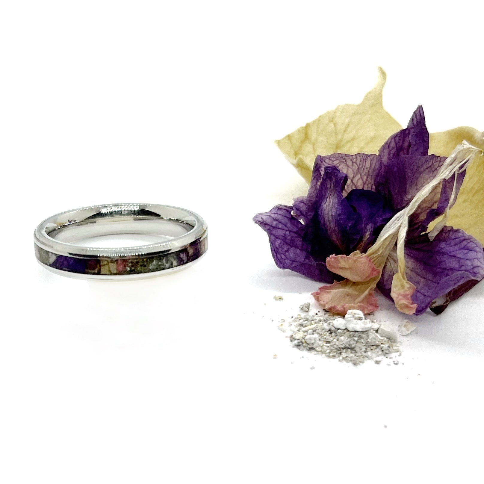 Our stainless steel channel set ring with your special flowers inlaid is a unique and meaningful piece of jewelry. Made from 304 stainless steel, this ring is hypoallergenic as well as non toxic to the human body.