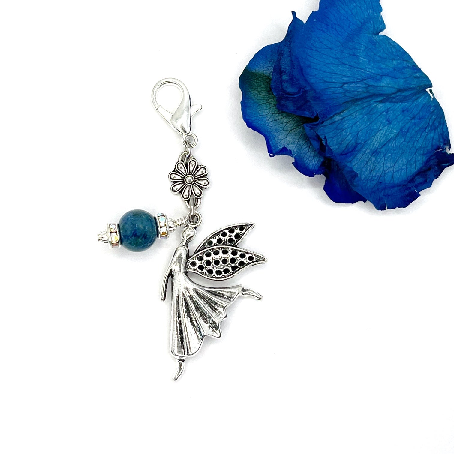 *Large dancing fairy-angel is complimented with a beautiful handmade flower petal bead and glittering crystals