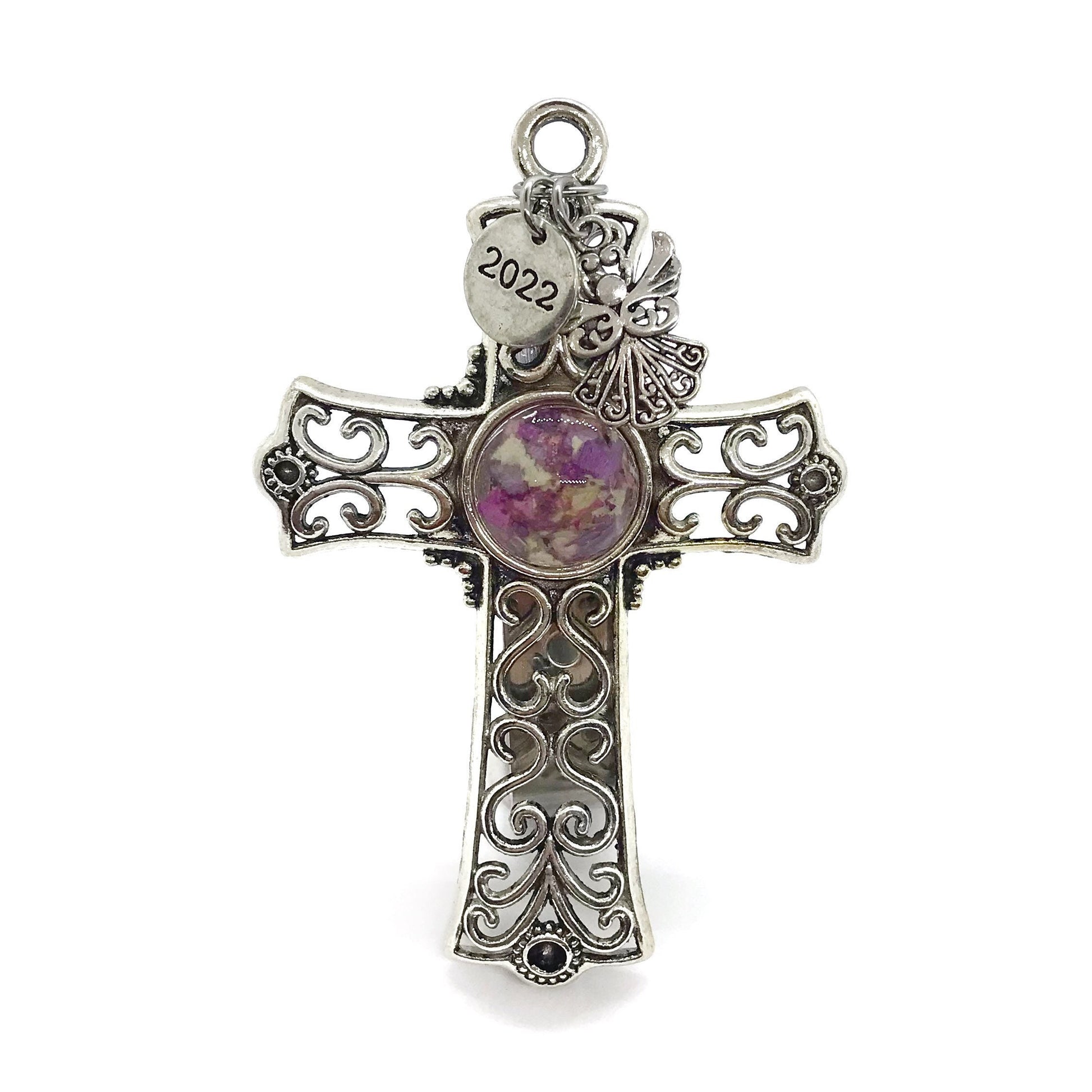 *Cross can be made with your petals preserved in clear acrylic or in our unique opaque bead material. (Up to 3 colors can be marbled together in our opaque material.)
